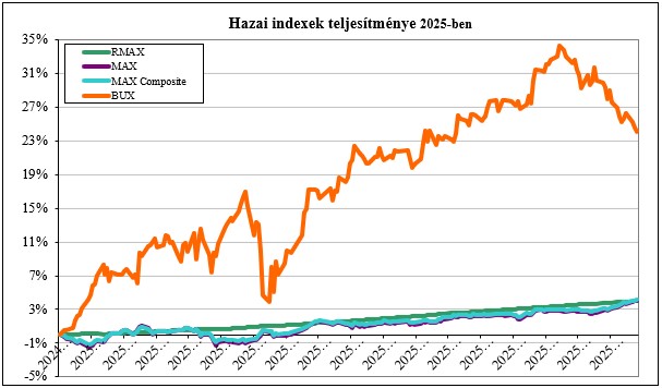 Magyarország gazdasága a korábbi úton halad: EU támogatások nélkül a szuverenitásra hivatkozva magas kamatozású külföldi hitelek béklyója által döcög. Ennek ellenére a hazai indexeken nem látszik komoly gazdasági lemaradás, bár a BUX az elmúlt másfél hónapban valamelyest visszaesett.