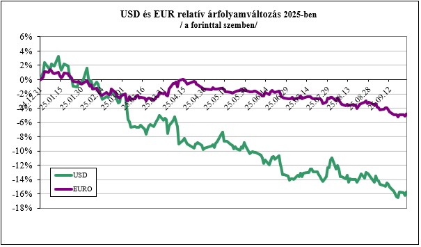 A korábban már jelzett forint erősödés azt hozza magával, hogy a nem forintban denominált – elsősorban USD-ban – indexek forintban kifejezve még szerényebb, akár negatív eredményt is mutathatnak, annak ellenére, hogy az értékük növekedett. Magyarul a devizahatás „megette” az idei nyereségüket.