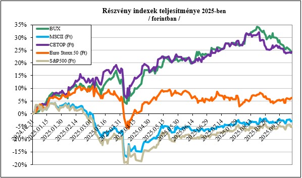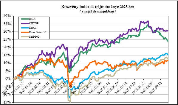 Kockázatosabb befektetések tekintetében ezidáig a kelet-közép európai indexek teljesítettek jobban, 30% körül, míg Nyugat Európa és az USA szerényebb eredménnyel büszkélkedhet (10-15%). Ebben vastagon benne van az Egyesült Államok vámpolitikája is.